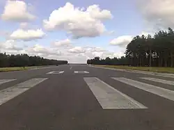 In 1998-2006 the runway surface, apron and taxiways were renovated by the government, but it was sufficient only to serve helicopters. After further reconstruction, the airport was officially reopened on 18 June 2016[1] for light aircraft (seating capacity up to four), gliders and helicopters. At that time, the airport had no refueling facilities and was formally just an airstrip with the assigned code A 129 and ICAO EYND (coordinates 55°19'40"N 21°2'45"E, 6 ft/2 m AMSL elevation, runway direction 08/26 and 815 m/2,674 ft asphalt).[2]