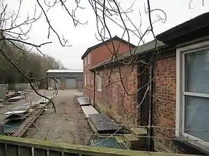 ![]() View south from the former level crossing. Former station building with modern extensions. | |