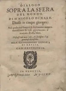 - Dialogo sopra la sfera del mondo (in Italian). Venezia: Francesco Ziletti. 1579.