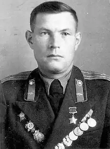 Nikolai Mikhailovich Gusarov (Russian: Никола́й Миха́йлович Гуса́ров; 4 December 1917 – 3 September 1979) was a Soviet Air Force colonel and Hero of the Soviet Union. During World War II, Gusarov claimed at least 15 German aircraft shot down. He served with the 486th Fighter Aviation Regiment. He retired from the military in 1955 and worked in a ceramic factory until his death at the age of 61.[1]