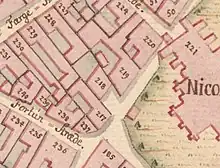 The property was listed as No. 189 in the city's East Quarter (Øster Kvarter) in 1689 and was owned by tailor Gregers Iversen's widow. The relatively small property was set back from the street. It was listed as No. 218 in 1756 and owned by St. Nicolas' Church and operated as a school.[1]