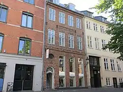 The number of residents had increased to 21 by 1845. The now-widowed Christiane Elisabeth Amundsen was still residing with her four children on the ground floor.[9] J. Petersen, a courier working for Rentekammeret, was also residing on the ground floor with his two children (aged 13 and 15) and a maid.[10] Christian Ferdinand Christensen (1805–1883), a scenic painter at the Royal Danish Theatre, resided on the second floor with his wife Ida née Thaning, their four children (aged two to eight), his mother-in-law Hedevig Thaning and two maids.[11] Thomas Nielsen, a grocer (høker) resided in the basement with his wife Karen Marie Nielsen née Petersen and a maid.[12]