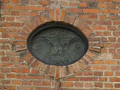 Nikolaj Plads 32 is constructed in red brick with three storeys over a walk-out basement and is just four bays wide. The undressed brick facade features a belt course with four sandstone heads above the ground floor and a simple cornice below the roof. The name of the building, Sankt Nicolai Hus, is now written with metal letters on a depressed rectangular wall section, flanked by four decorative wall anchors, two on each side, between the two upper floors. The doorway is topped by an arched fanlight and above it is an oval window. The roof is clad with brack tile and features two dormer windows towards the street. The roof ridge is pierced by a chimney.[2]