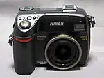 The Nikon Coolpix 8400 is a digital camera announced September 16, 2004, succeeding the Nikon Coolpix 5400. It is a high-end model among the brand's range of bridge cameras with eight megapixels, only below the Nikon Coolpix 8800 equipped with a more powerful zoom lens. Besides its pixel count, its main selling point is the very wide angle lens, equivalent to a 24 mm in 135 film format. Its only competitor at a comparable price is the Kodak EasyShare P880, which has longer telephoto lens but is bigger and lacks a swivelling screen.
