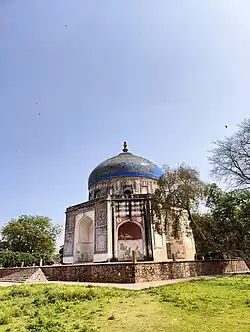Nila Gumbad (lit.'Blue Dome') is a tomb located within the Humayun's Tomb complex at Delhi, India. Historians are unsure about the identity of the person who has been buried. Some claim that it houses the tomb of an attendant of a Mughal noble and was buried during the reign of Jahangir. According to others, the tomb existed much before the Humayun's Tomb was constructed. At the time of construction, it was covered with glazed tiles most of which have been destroyed. This building along with other buildings form the UNESCO World Heritage Site of Humayun's Tomb complex.