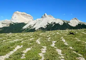 Ninaki Mountain is located in Montana, 20 kilometres (12 mi) southwest of Carway, Alberta and 1 kilometre (0.62 mi) southwest of Chief Mountain.[1] It was named in honour of the sacrifice of the wife who threw her baby, then herself off the mountain in reaction to the death of her war-chief husband as a result of a battle which took place between Peigan and Blackfeet warriors.