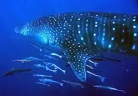 ![]() Male whale shark, about 6 metres (20 ft) long | |