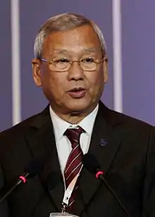 Niwatthamrong Boonsongpaisan (Thai: นิวัฒน์ธำรง บุญทรงไพศาล, RTGS: Niwatthamrong Bunsongphaisan, pronounced [ní.wát.tʰam.roŋ bun.soŋ.pʰaj.sǎːn] ⓘ; born 25 January 1948) is a Thai businessman and politician who served as the acting Prime Minister of Thailand following Yingluck Shinawatra's removal from office by the Constitutional Court of Thailand on 7 May 2014 until his deposition in a coup d'état three weeks after taking office.[1] Before becoming acting premier, he was Deputy Prime Minister and Minister of Commerce, and before that managed the country's rice pledging scheme.[2][3]