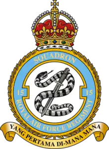 No. 15 Squadron RAF Regiment is a field squadron of the RAF Regiment in the Royal Air Force. Its mission is protection of RAF bases from ground attack. The squadron's headquarters is at RAF Marham, having moved from RAF Honington.[2]