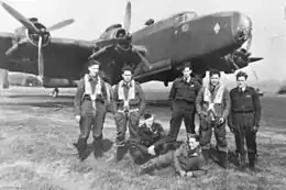 ![]() A No. 466 Squadron Halifax B.III with its crew after their return from a raid on Germany in January 1944 | |