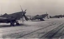 No. 8 Wing SAAF was a South African Air Force commanded formation during World War II that served in Italy, the Balkans and the Mediterranean Theatre. It was formed on 25 July 1944 and consisted of Royal Air Force and South African Air Force squadrons under South African command. MAAF on 13 June 1944 asked the SAAF to reman immediately a new defensive fighter wing HQ to embrace No. 3 Squadron, No. 11 Squadron and No. 41 Squadron. By 22 June the request had been approved.[2] Col "Rosy" du Toit (promoted from Sweep Leader No. 7 (South African) Wing) opened the new office for the Wing in the SAAF Headquarters building in Bari on 16 July 1944. HQ 8 Wing would also take control of No. 87 Squadron RAF and No. 185 Squadron RAF[3] Lt-Col D.D. "Snowy" Moodie was appointed Sweep Leader of the new Wing.[4] On 25 July 8 Wing came under administrative control of Desert Air Force. 8 Wing Headquarters moved from Foiano to Borghetto on 10 September 1944. where the two RAF squadrons joined the Wing, together with RAF No. 53 RSU (Repair and Salvage Unit).[5] By the end of September, a it became clear that the end of the war was not at hand, the SAAF had two fighter-bomber Wing operating in Europe simultaneously for the first time (7 Wing and 8 Wing).