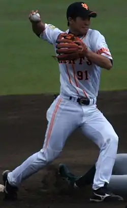 Nobuyuki Okumura (奥村 展征, Okumura Nobuyuki, born May 26, 1995 in Konan, Shiga, Japan) is a professional Japanese baseball player. He plays infielder for the Tokyo Yakult Swallows.