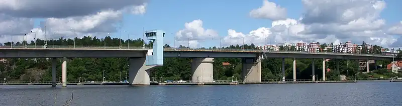 Nockebybron (The Nockeby Bridge) is a 450 meter long swing bridge in Lake Mälaren between Kärsön in the Ekerö County and Nockeby in Bromma, Stockholm County. The current bridge was opened in 1973.