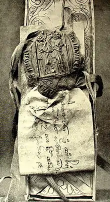 Document attached to the casket