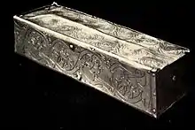 The Noli me tangere casket (Noli me tangere: Latin for "Don't touch me") was a small silver-gilt casket made in 1356 for the Aachen Cathedral Treasury. It measured 15.2 cm in length, 3.7 cm in height and 4.8 cm in width. The casket was kept in the Marienschrein together with the key relics of the cathedral until the nineteenth century and the casket remained in the possession of the cathedral treasury until its destruction during the Second World War.