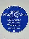 On 25 February 2019, it was announced that Noor Inayat Khan would be honoured with a blue plaque at her wartime London home at 4 Taviton Street in Bloomsbury – the house that she left on her final and fatal mission and the address that she etched onto her bowl while in prison so she could be identified.[63][64] Noor is the first woman of South Asian descent to have a blue plaque honouring her in London.[65][66] The plaque was unveiled at a virtual ceremony broadcast on English Heritage's Facebook page at 7 pm on Friday 28 August 2020.[63]