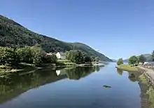 Spanning over 10 kilometres (6.2 mi) the Eid (Eidselva) is a river that flows through Nordfjordeid. It has its outlet from the Hornindalsvatnet and extends down to the Eidfjorden in Nordfjordeid. The river is famous for its salmon fishing, the largest salmon ever caught in the river was 27.6 kilograms (61 lb). It was caught by Martin Hjelle in 1944. The fishing season is from June to the end of August. The river is listed as a national salmon river by the Norwegian government. This offers it special protection against harmful interventions and activities in the watercourses and against aquaculture and pollution.[23]