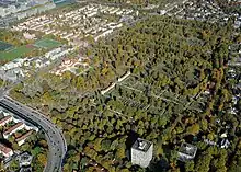 - A mass grave for 2,099 victims of aerial bombardment during World War II has been converted to form a "grove of honour for air raid victims" (Ehrenhain für Luftkriegsopfer), with a monument by Hans Wimmer.