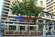 Nordsee was founded in 1896 as "German steam-fishery company Nordsee" (German: Deutsche Dampffischerei-Gesellschaft Nordsee) to supply seafood from the North Sea to the residents of Bremen.[2] In 1964 the company opened restaurant type retail shops offering meals prepared from seafood in addition to raw seafood. This concept, known as Nordsee Quick, was a huge success as nearly 300 shops opened within 2 years.[3] In 1998, the company sold the fishery division known as Deutsche See to allow for more focus towards seafood retailing. The new focus was demonstrated with the introduction of locations serving smaller, quicker takeout meals in the following year.