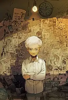 Norman (Japanese: ノーマン, Hepburn: Nōrman) is a character in the manga series The Promised Neverland, created by Kaiu Shirai and Posuka Demizu. Norman is an 11-year-old boy living at Grace Field House. Like Ray and Emma, Norman consistently gets perfect scores on his daily exams. He is known for being a genius strategist and planner, as well as unbeatable at the game of tag. He discovers the truth of the orphanage with Emma and teams up with Ray to devise a plan to escape. While he knows leaving with every child in the house is near to impossible, his love for his sister Emma pushes him to continue trying.