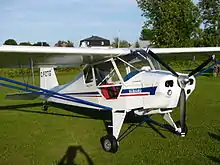 The aircraft fuselage is made from welded steel tubing, with its wings made from wood, and all surfaces covered in doped aircraft fabric. Its 33.0 ft (10.1 m) span wing has an area of 169 m2 (1,820 sq ft) and mounts flaps. The wing is supported by V-struts and jury struts. The standard engines used are the 64 hp (48 kW) Rotax 582 two-stroke, the 80 hp (60 kW) Rotax 912UL or 71 to 100 hp (53 to 75 kW) Subaru EA four-stroke powerplants.[2]