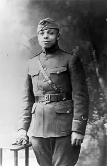 However, his studies were interrupted this time by World War I. Houston was drafted by the U. S. Army, where he served as the regimental personnel adjutant with the 32nd Division—the only African American to hold that position in the entire army. Upon his discharge, he once again returned to UC Berkeley to attend summer school, but left the following fall to become an agent with the National Life Insurance Company in Los Angeles. At National Life, Houston sold insurance to black waiters and cooks at the railroad commissary.[2]