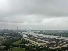 Norske Skog Walsum is a pulp mill and paper mill situated in the Duisburg neighborhood of Walsum, the German state of North Rhine-Westphalia. The mill starts operations in 1962, established by Haindl and owned by Norske Skog from 2001. Since the 1990s the mill had two paper machines producing lightweight coated paper, a type of magazine paper. Both paper machines have a trimmed width of 725 centimeters (285 in). PM4 has an annual production of 225,000 tonnes, PM10 has 215,000 tonnes.[1] The mill used as its source one-third thermomechanical pulp, one-third kraft pulp and one-third coating. The mill is situated on the Rhine.[2] Until production curtailment in 2013, the mill employed 460 people.[3]