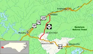 North Carolina Highway 141 (NC 141) is a primary state highway in the U.S. state of North Carolina. It serves to connect the Peachtree community, located in the Valley River Mountains, with Marble and Murphy.