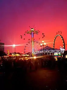 The North Carolina State Fair is an American state fair and agricultural exposition held annually in Raleigh, North Carolina.[3] Founded in 1853, the fair is organized by the North Carolina Department of Agriculture and Consumer Services.[4][5] It attracts around a million visitors over eleven days in mid-October.[3][6]