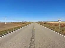ND 42 begins at a junction with ND 50 near the small town of Corinth, in northern Williams County. After going through town, it enters Divide County, and meets ND 5 in the county seat, Crosby. For 8 miles (13 km), ND 42 runs concurrently with ND 5 from Crosby to just south of Ambrose. ND 42 turns northward to end at the Canadian border.[3] The roadway continues northward beyond the Ambrose–Torquay Border Crossing and port of entry as Hwy 350, 16 kilometres (9.9 mi) south of Torquay, Saskatchewan.[4][5]