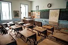 The North River Stone Schoolhouse is a historic building located north of Winterset, Iowa, United States. Built in 1874 of coursed native limestone, the one-room schoolhouse educated local students until it closed in 1945.[2] The building features quoining on the four corners of the exterior, four windows capped with stone lintels on the east and west elevations, and an off-center doorway on the main (south) facade. From 1962 to 1973 the building was restored, and it opened as a school museum operated by the Madison County Historical Society. The building was listed on the National Register of Historic Places in 1977.[1]