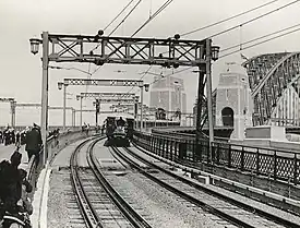 First passenger train crossing the Sydney Harbour bridge, 19 March 1932.