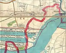 Unlike many areas of London, North Woolwich had formally-defined boundaries by which it comprised two separate tracts of riverside land. The smaller and more westerly part, containing 68 acres (28 ha), extended west for about 12 mile (800 m) from North Woolwich station. The larger detached part, further fragmented by dock facilities, extended east from the Royal Victoria Gardens. However as in many areas of London, informal local definitions of districts are more nuanced