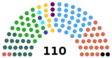 | Party | Votes | Vote % | List seats | Top-up seats | Total seats | Seats % | |||
