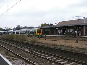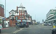 In 1900 visitors arriving via Northfield railway station could visit the skating rink on West Heath Road next to the bridge over the River Rea. Unfortunately the skating rink was used during the First World War as a munitions factory and following an accident the rink was destroyed by fire.[7] Another notable building of the area was The Bath Tub open air lido (now demolished), opened on 1 July 1937 in Alvechurch Road, where 20,000 people had gathered to watch the opening ceremony by Gracie Fields with Mantovani and his orchestra and the M.P. for Northfield and Kings Norton, Ronald Cartland, the brother of Dame Barbara Cartland, the novelist. The lido which had been built by Percy Hollier, who intended it to be "Birmingham's brightest entertainment spot" and which included a 180-foot-by-90-foot swimming pool as well as a putting green, lawn for archery and a children's playground, only operated for three years and was closed due to commercial failure.[8][9] Laughtons took over the site with Eddystone Radio during World War II, when its semi-rural location helped it to avoid attack by German air raids. The lido site is now covered by a housing estate.