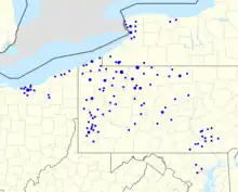 Map of Northwest Bank's branches in Western Pennsylvania as of 2016