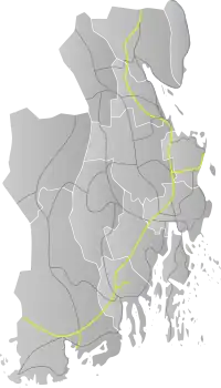 County Road 300 (Norwegian: Fylkesvei 300) or Ringveg nord ("Ring Road North") is a bypass road running north of Tønsberg, Norway. It is 7.0 kilometers (4.3 mi) long and connects the eastern part of Tønsberg, via the Frodeåsen Tunnel to E18. The road opened on 13 March 2008.[1]
