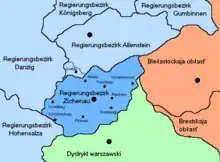 • Zichenau (region) or Regierungsbezirk Zichenau of the Nazi German Province of East Prussia in 1939–45