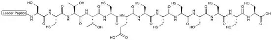 Nosiheptide precursor peptide including 37 amino acid leader peptide and 13 amino acid structural peptide (shown).