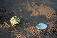 The crucifix toad is a ground-dwelling frog which inhabits the arid areas of western New South Wales and Queensland. It is able to survive dry periods by burrowing and reducing activity.[5] Upon very heavy rain, they will emerge from the ground, and begin breeding in temporary ponds. The males call from within the pond to attract the female. The call is a "woop". The development of the tadpole is rapid so as to take advantage of the wet conditions and reducing the risk of them dying from the pond drying up. The cycle is so quick it can be over in six weeks.[6]