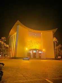 Architecturally, NODASA combines Western architectural styles with a fish-shaped design, emblematic to the "Ichthys" symbol of the first Christian tenets.[3][4][5] The parish also features a center erected in 1965 and augmented in 1989, serving as a presbytery with clergy apartments, a technologically equipped informatics hub, and an expanse designated as the parish's horticultural garden.[3]