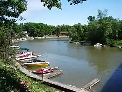 The Nottawasaga River is a river in Simcoe County and Dufferin County in Central Ontario, Canada.[1] It is part of the Great Lakes Basin, and is a tributary of Lake Huron. The river flows from the Orangeville Reservoir in the town of Orangeville, Dufferin County, through the Niagara Escarpment[2] and the Minesing Wetlands, the latter a wetland of international significance (Ramsar Convention site), and empties into Nottawasaga Bay, an inlet of Georgian Bay on Lake Huron, at the town of Wasaga Beach, Simcoe County.