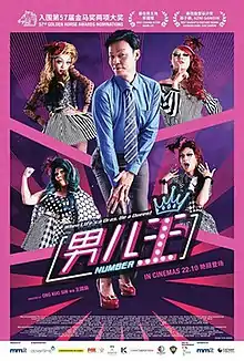 Number 1 (Chinese: 男儿王) is a 2020 Singaporean comedy-drama film written by Jaspers Lai and directed by Ong Kuo Sin.[2] The film stars Mark Lee, Henry Thia, Kiwebaby Chang, Jaspers Lai, Kenneth Chia and Darius Tan. The film revolves around an out-of-work middle-aged man who accidentally becomes a night club drag queen sensation.