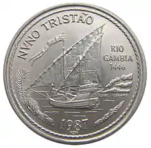 It is uncertain how far Nuno Tristão actually sailed and where he died. Up until the 1940s, Portuguese tradition asserted Tristão died at Rio do Nuno (Nunez River, modern Guinea), or that he fell just short of it, and died at Rio Grande (Geba River, Guinea-Bissau).[6] As a result, Nuno Tristão was traditionally credited as the 'discoverer' of Portuguese Guinea (modern Guinea-Bissau), and even said to have been the first European to set foot on the landmass of what is now the modern city of Bissau.[7] If true, then Nuno Tristão's last journey was an enormous leap beyond the previous Portuguese milestone (Cabo dos Mastos, Cape Naze, Senegal).