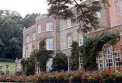 It is situated on a rising ground at the end of a large lawn and is backed by a grove of ashes and limes. There is a 5.5 acres (2.2 ha) garden with a lily pond.[6]