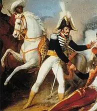 Joachim Murat and his staff at the Battle of Ostrava, 1812. Otello can be seen wearing a red and white outfit with a white turban alongside Murat's staff.