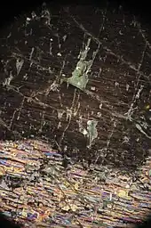 - ↑ P. E. Champness, K. A. Rodgers (October 2000). "The origin of iridescence in anthophyllite-gedrite from Simiuttat, Nuuk district, southern West Greenland.". Mineralogical Magazine. 64 (5.1): 885–889. Bibcode:2000MinM...64..885C. doi:10.1180/002646100549715. S2CID 140574142.