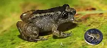 Nyctibatrachus sabarimalai, also known as the Sabarimala night frog[2] or Sabarimala wrinkled frog,[3] is a species of frog in the family Nyctibatrachidae, commonly known as the robust frogs. It was described in 2017, along with six other species in its genus, by the herpetologist Sonali Garg and her colleagues. A small frog, it has an adult male snout–vent length of 12.3–13.2 mm (0.48–0.52 in). It is mainly brown, with a dark brown back, a greyish-white underside, light brown bands running from the eyes to the middle of the back, light brown limbs, and light grey hands and feet. When preserved in ethanol, it is mostly grey, with greyish-white undersides and light grey limbs.