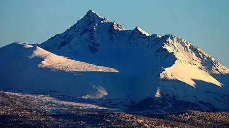 O'Malley Peak is a 5,150+ ft (1,570+ m) mountain summit located in the Chugach Mountains, in Anchorage Municipality in the U.S. state of Alaska.[3] O'Malley Peak is situated in Chugach State Park, 12 mi (19 km) southeast of downtown Anchorage, 2.3 mi (4 km) west of Mount Williwaw, and 1.45 mi (2 km) northwest of The Ramp, which is its nearest higher peak. Access is via the Powerline Trail with several scramble routes to the summit.
