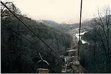 The Scenic Lift is a double lift that runs to the summit of Mount Harrison, where there is a scenic overlook. The lift is 3,019 feet (920 m) long and rises 779 feet (237 m) in elevation.[7] The Blue Lift is also a double lift that terminates at the Alpine Way slope and the alpine slide. The Red Lift and the Black Lift are quad lifts.[1]